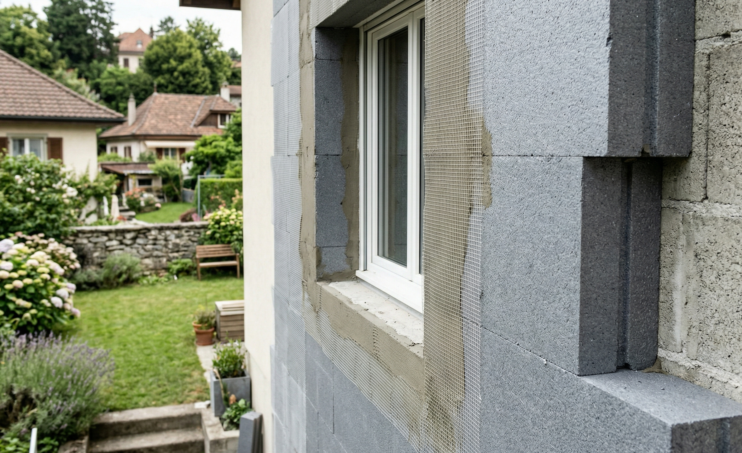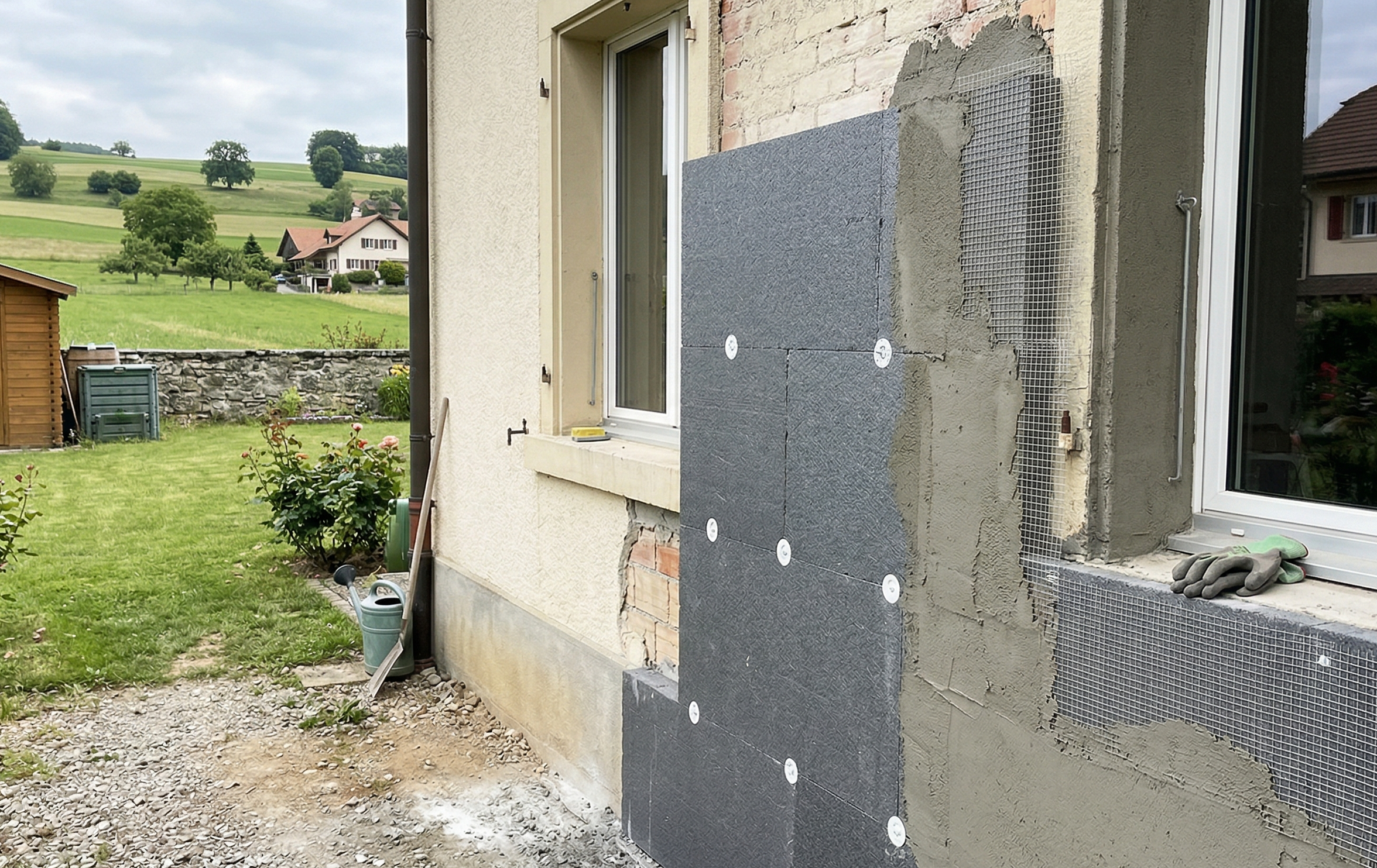Isolation thermique par l'extérieur (ITE), bardage ventilé et ravalement complet.